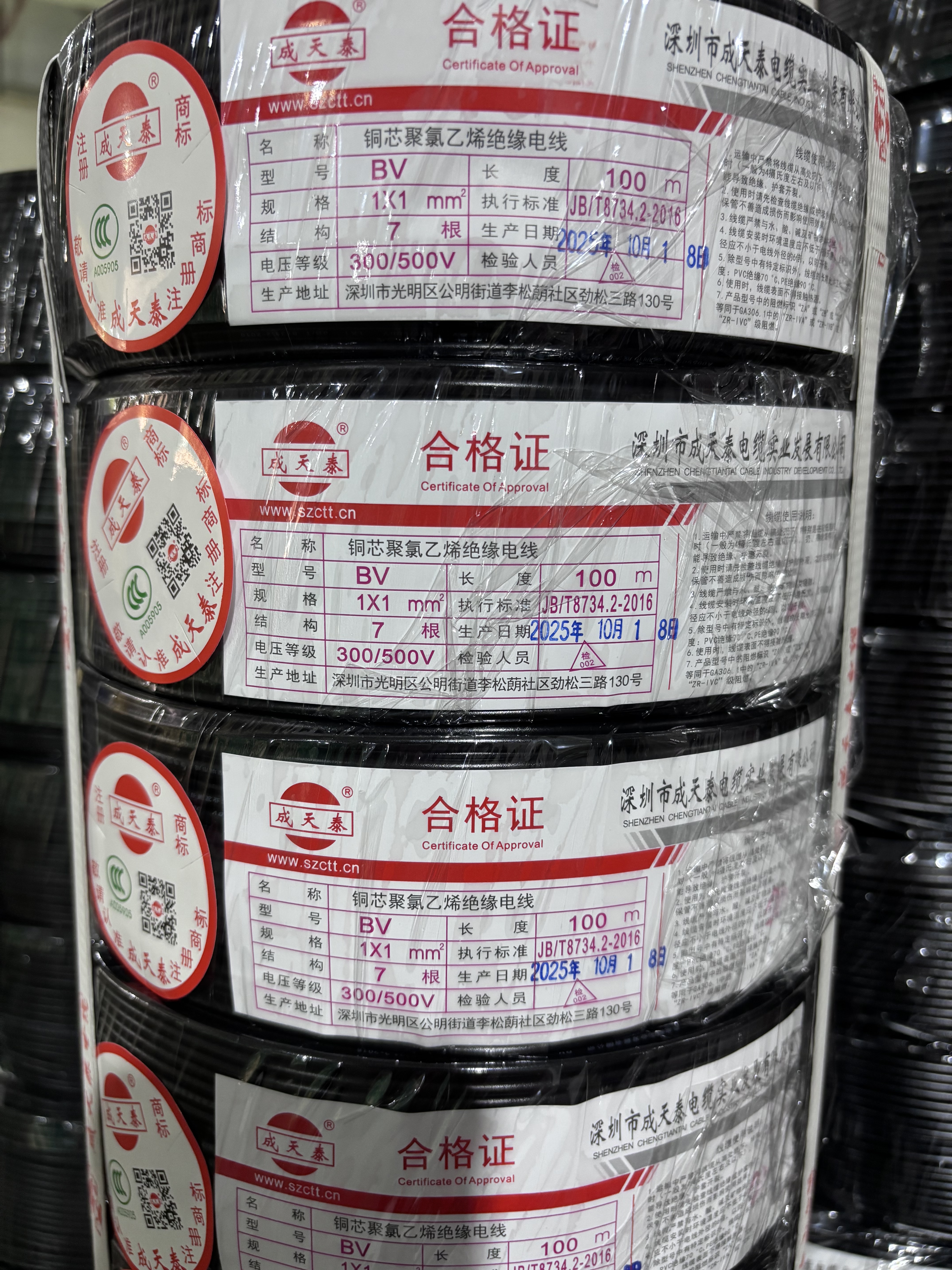 The packaging is designed for easy identification, featuring clear labeling with wire specifications, length, and manufacturing details. This ensures efficient inventory management and quick access on job sites.