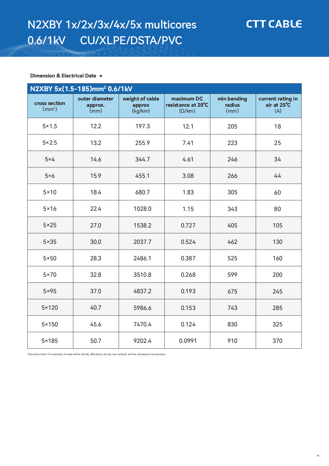 Besides copper conductor cables, CTT CABLE also offers aluminum power cable variants for applications where lightweight and cost-effective solutions are preferred. The XLPE insulation combined with PVC sheathing ensures excellent protection against electrical faults and environmental hazards. The cable's sheath color is typically black but can be customized according to clients' requests, enhancing versatility for different project requirements.