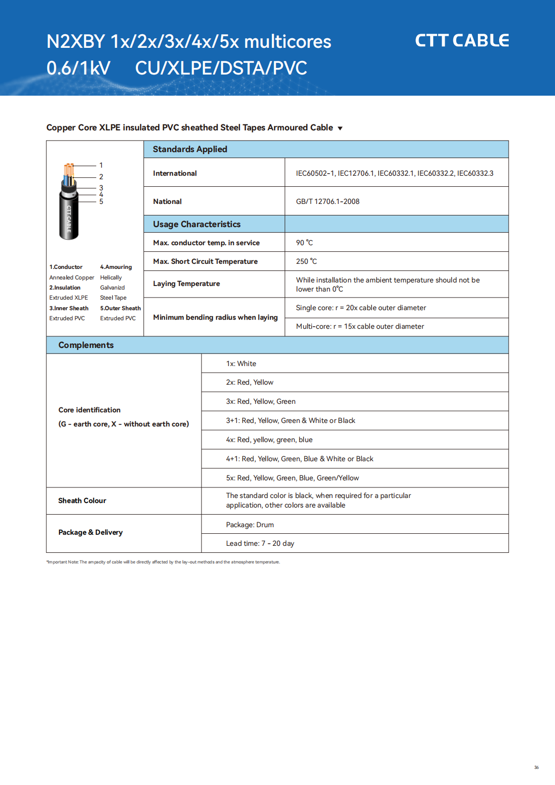 A1: The brand name is CTT CABLE and the model number is CU/XLPE/PVC.