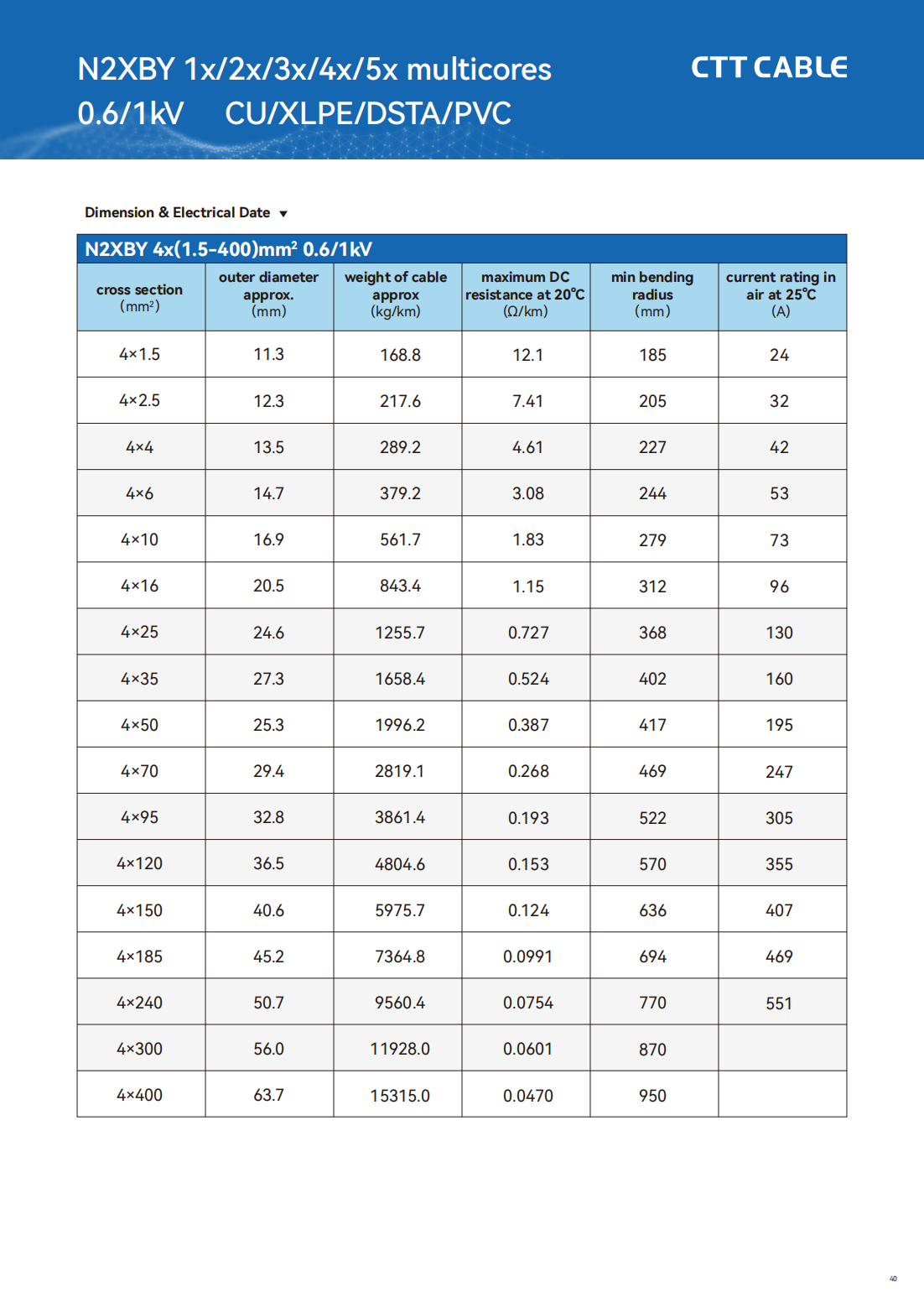 One of the standout features of this power cable is its insulation material: cross-linked polyethylene (XLPE). XLPE insulation is renowned for its superior electrical, thermal, and mechanical properties. It provides excellent resistance to heat, chemicals, moisture, and abrasion, significantly extending the cable's lifespan and reducing maintenance needs.