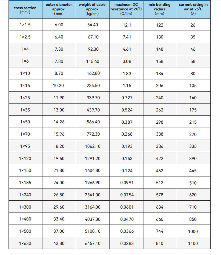 This copper conductor cable is engineered to operate safely within a broad temperature range, from -40°C to +90°C. This wide temperature tolerance ensures that the cable can withstand harsh environmental conditions, including extreme cold and heat, without compromising its performance. The cable’s operating temperature is rated at 70°C, which means it can reliably carry electrical current without overheating, ensuring safe operation even under heavy electrical loads.
